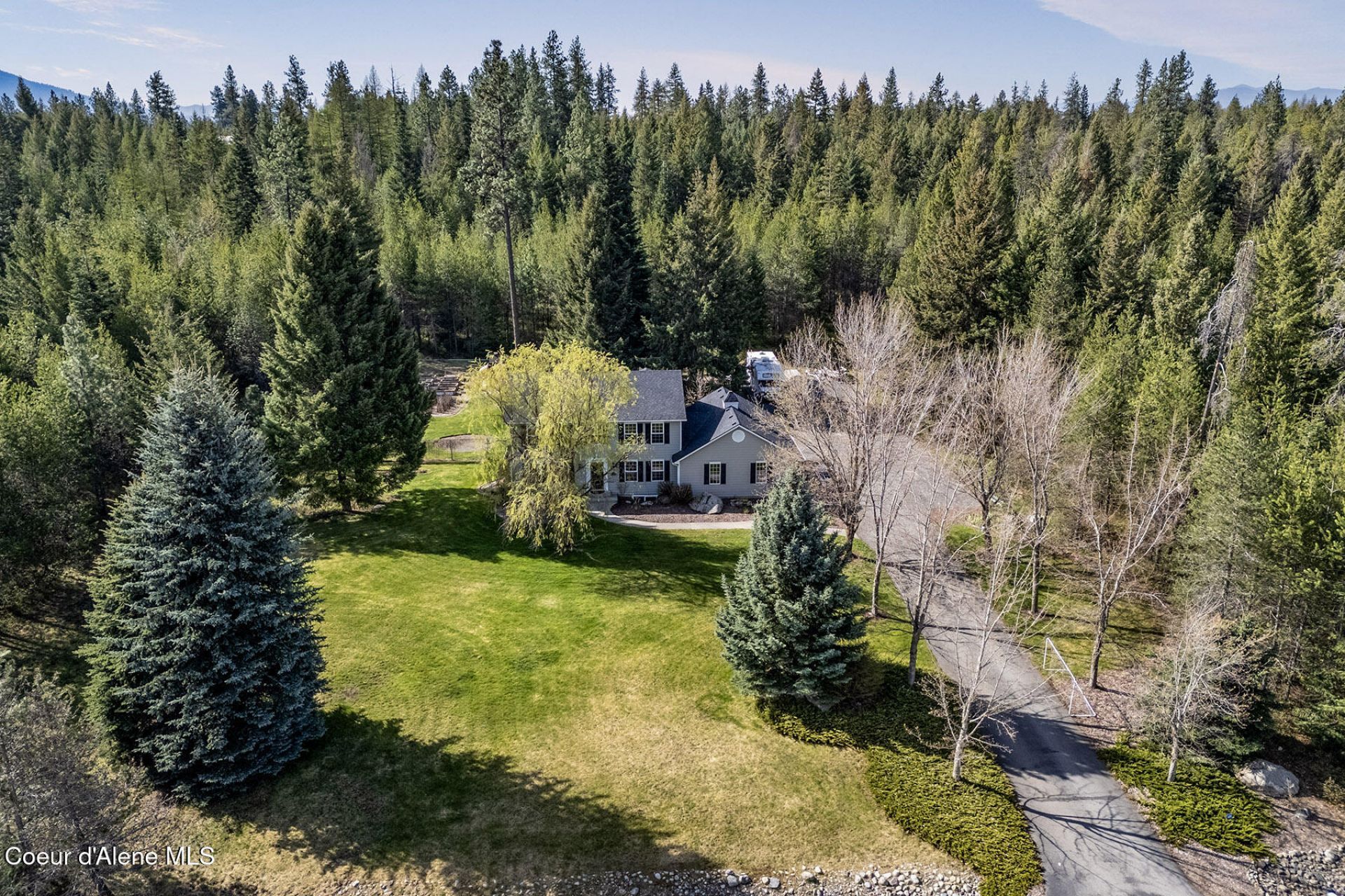 Tucked away on 4.82 beautifully treed acres in Rathdrum, this 3,765 SF home offers 6 bedrooms + an office, several large recreational spaces, 3.5 baths, blending comfort, function, and lifestyle. Warm, light-filled living spaces and a spacious chefs kitchen create an inviting feel, while the office features French doors opening to a private elevated deck. Outdoors, enjoy a backyard designed for enjoying life! Complete with a playset, raised garden beds, greenhouse, fruit trees, and a chicken coop with 8 chickens. A private shooting range and dirt bike loop add unique recreational appeal, while seasonal hops blooming along the neighboring fence create a charming backdrop. Peaceful privacy just minutes from schools, shopping, Twin Lakes, golf, Coeur d'Alene, and Spokane.